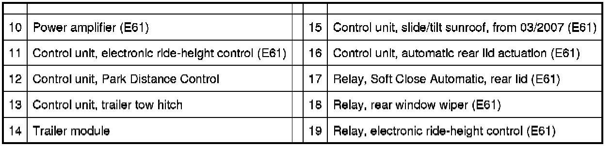 61 35 ... - Overview of control units, equipment mounting, luggage compartment