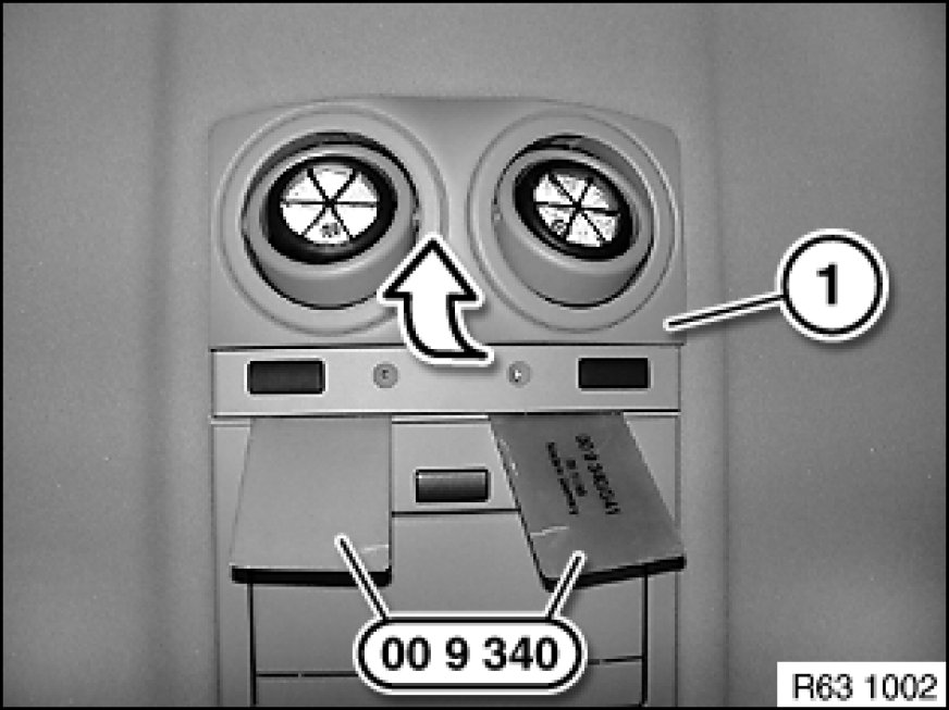 Lever out reading light (1) with special tool 00 9 340 00 9 340 Disassembly Aid (2 Pieces) as illustrated.