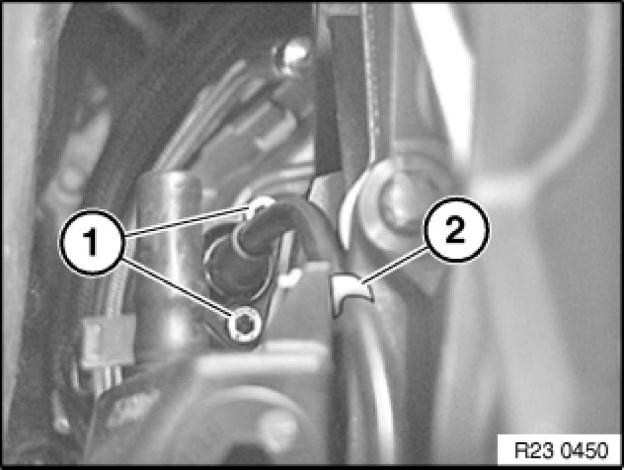 Release cable tie (2). Remove plug and unclip wiring harness from holder.