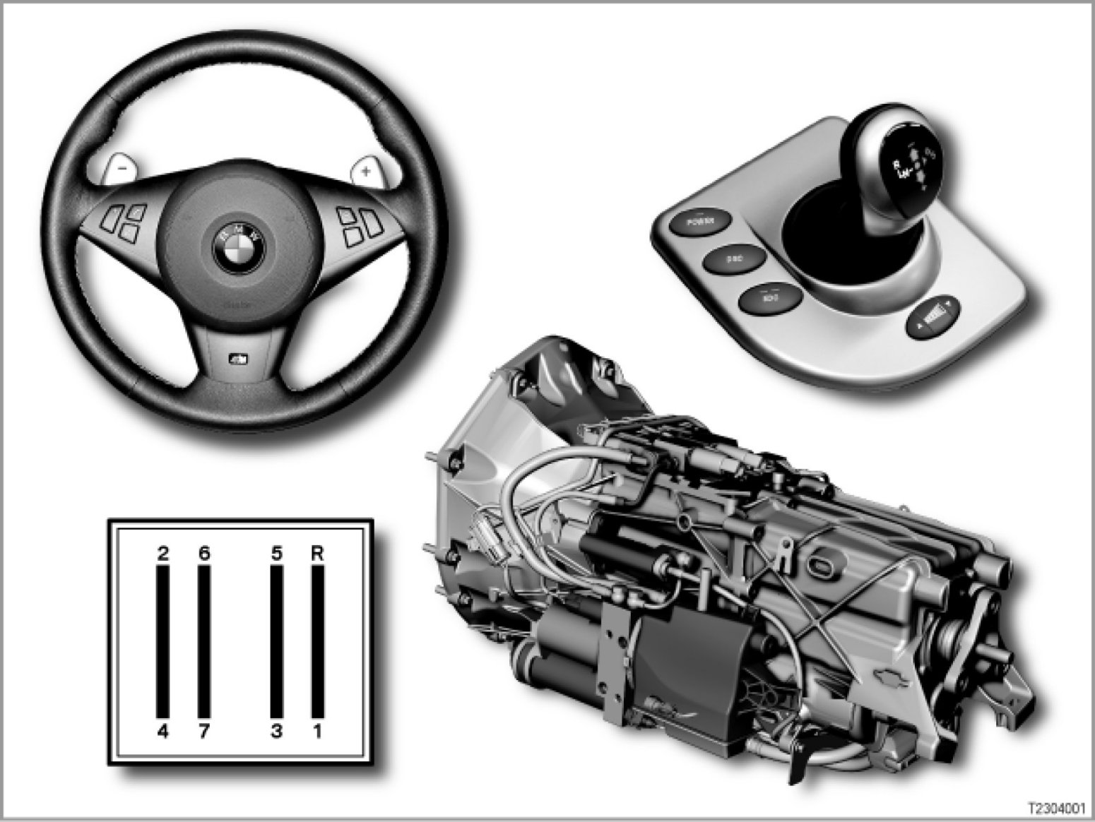 The shift pulse is transmitted electrically to the SMG control unit ("shift-by-wire", i.e. gear shift by electronics). With "shift-by-wire" there is no mechanical link between the gear lever or gearshift paddles and the transmission.