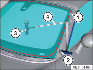 - Wire end (1) must be bent towards window glass.