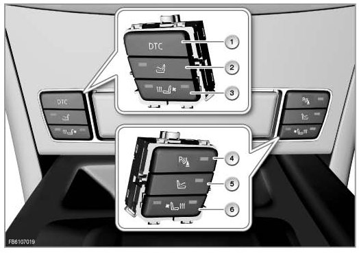 As a general principle, the button for the Dynamic Traction Control (DTC) or Park Distance Control (PDC) is located in the top row. If the vehicle does not have PDC, the button for the luggage compartment lid or roller cover is located here.