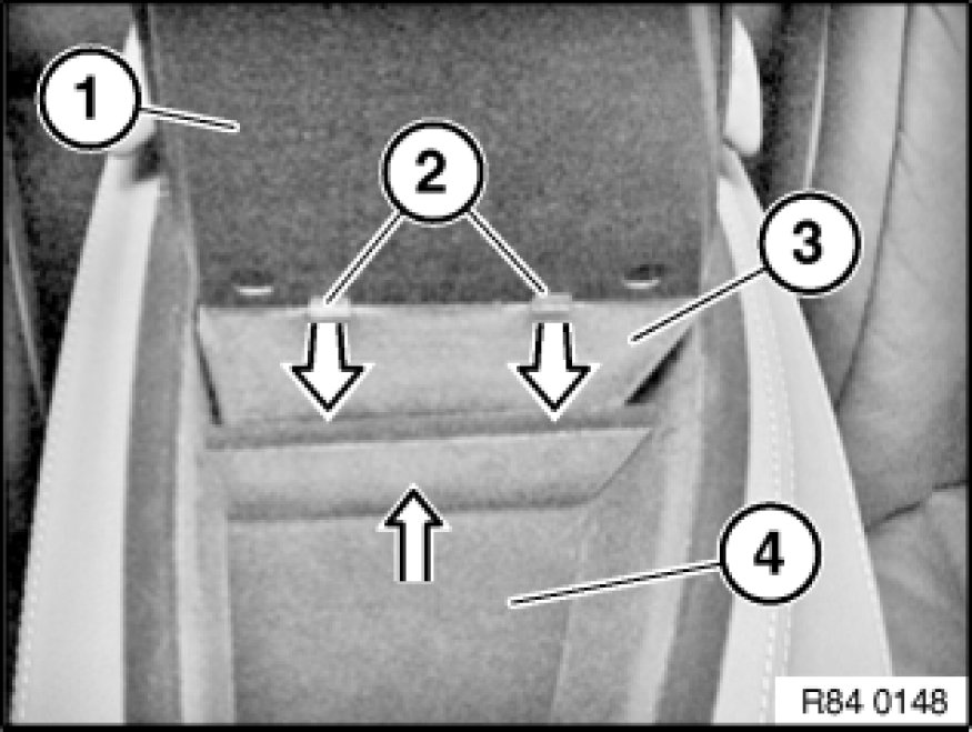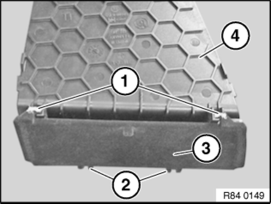 Make sure guide pins (1) of cover (3) are correctly seated in guide of centre console base (4).