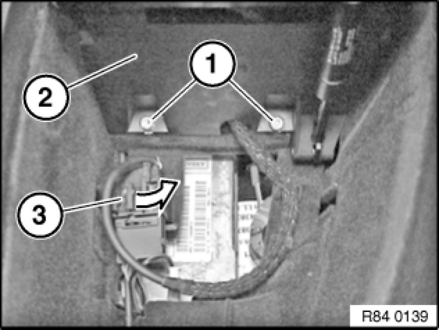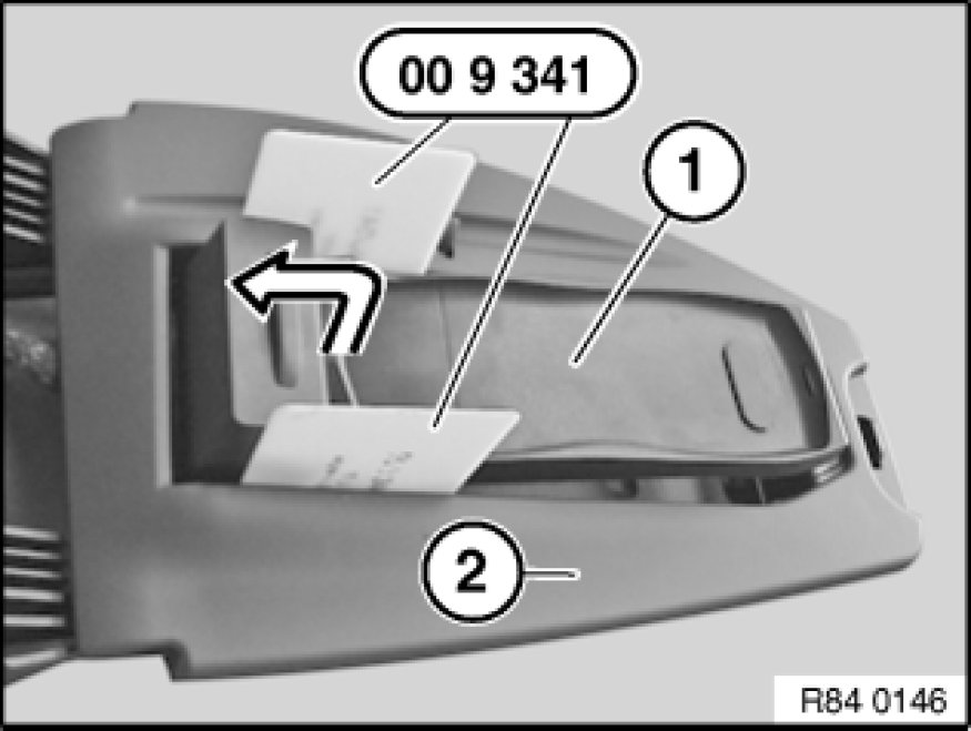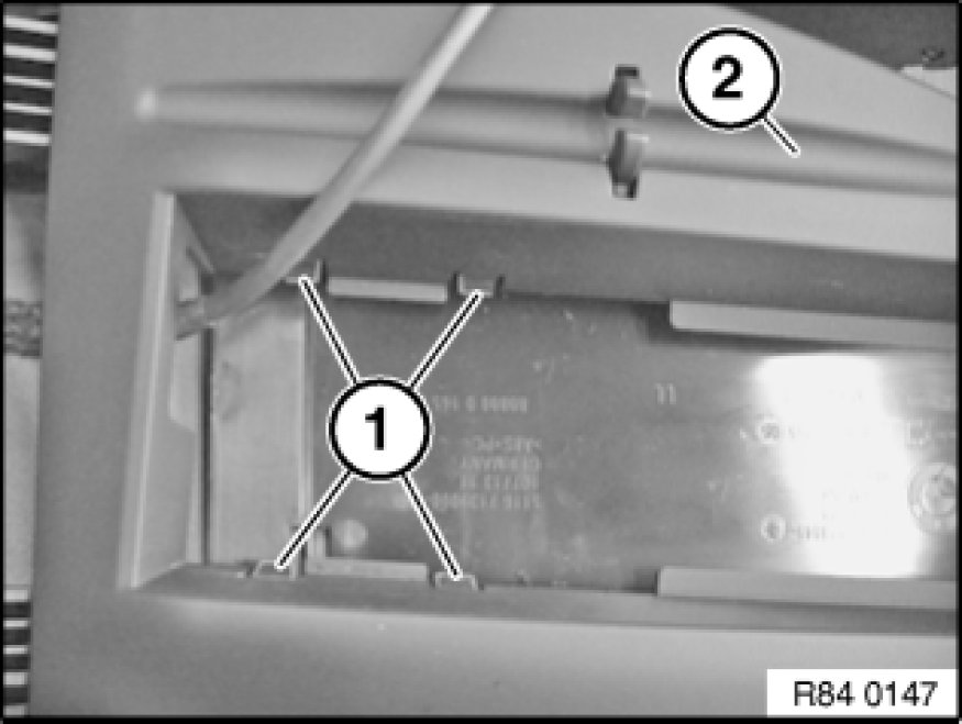 Unlock eject box (1) with special tool 00 9 341 and feed towards top rear out of telephone mounting (2).