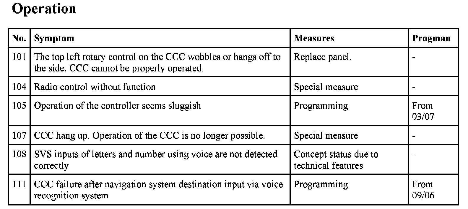 The navigation system Professional (CCC) is a complex control module with a large number of possible fault profiles. The following list shows known symptoms in the functional area CCC audio and navigation. Fault profiles from the functional areas of telephone and Telematic services as well as integrated heating / air conditioner control are not covered in this test module.