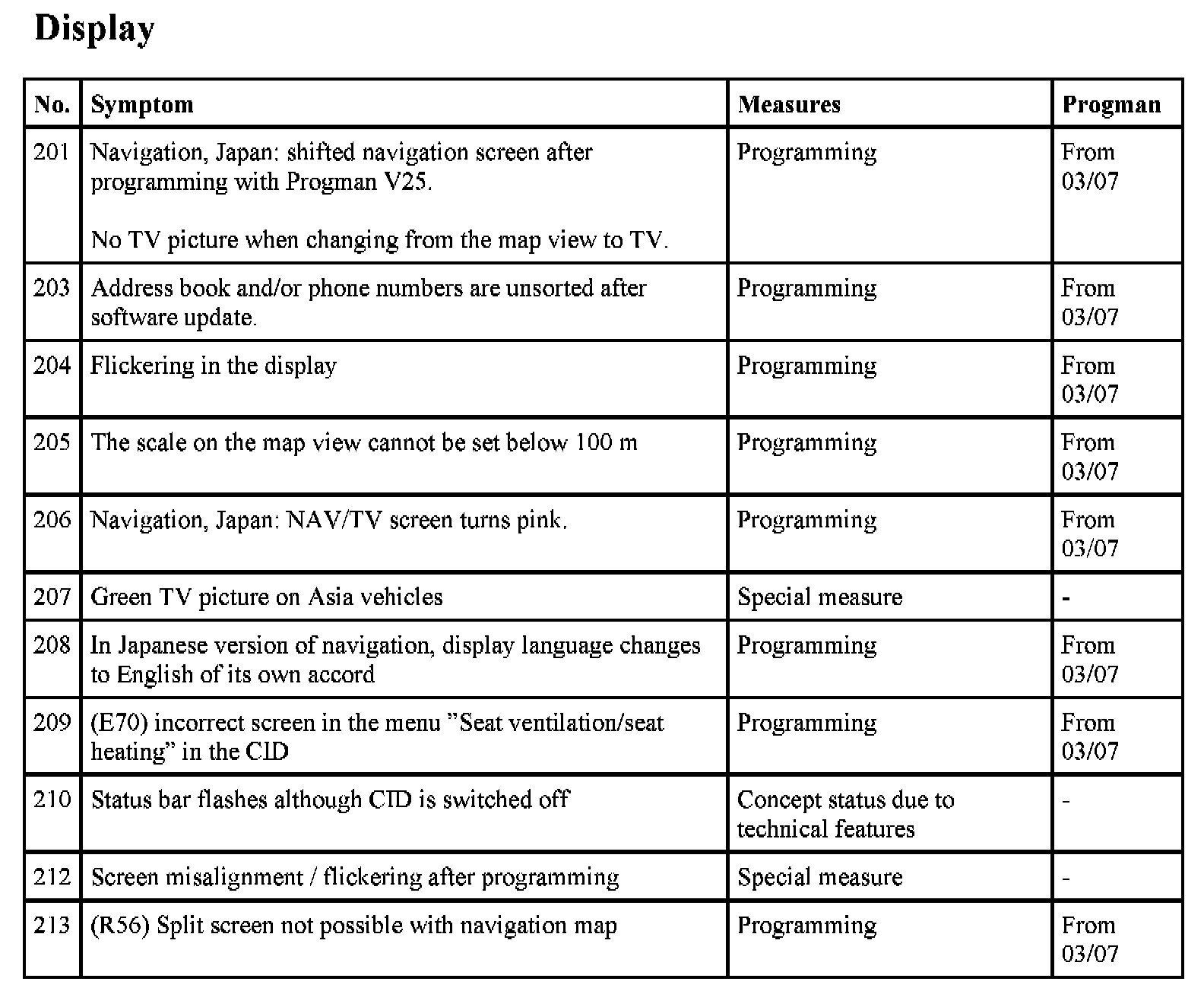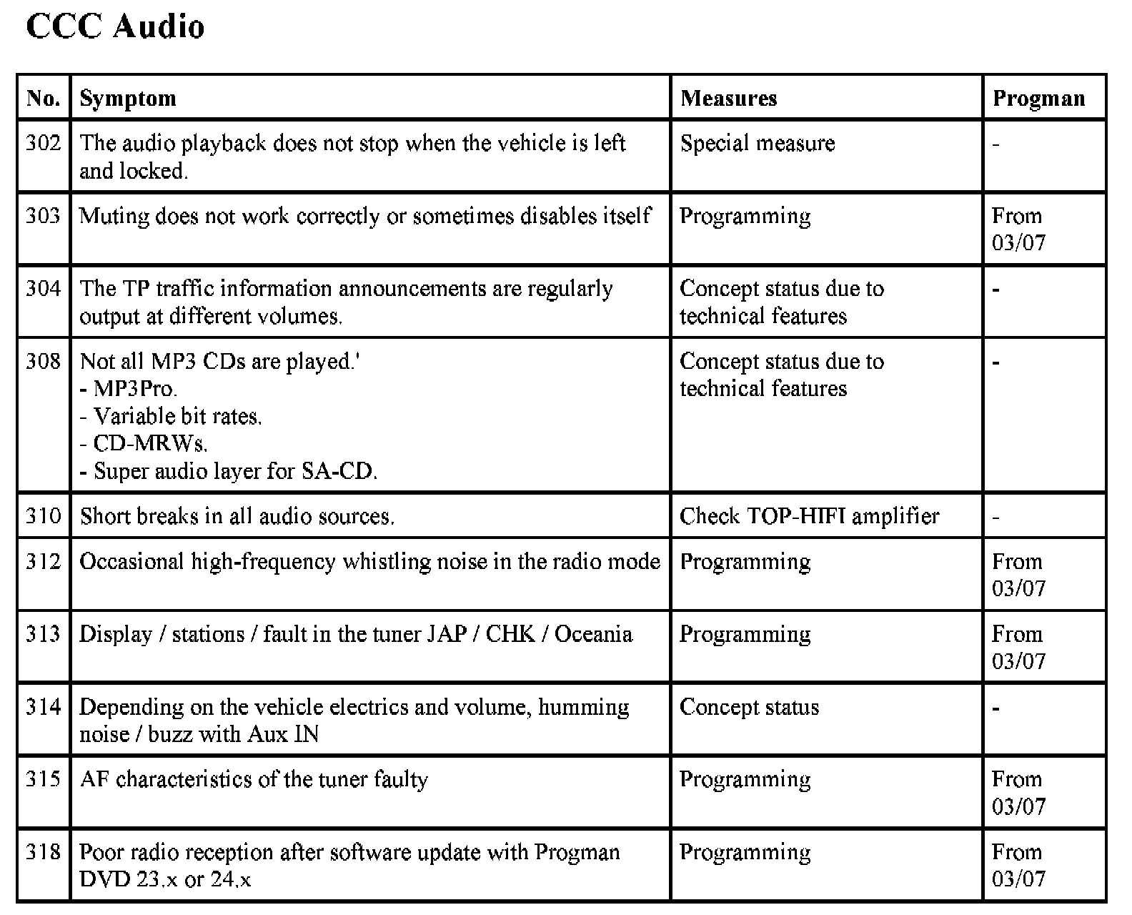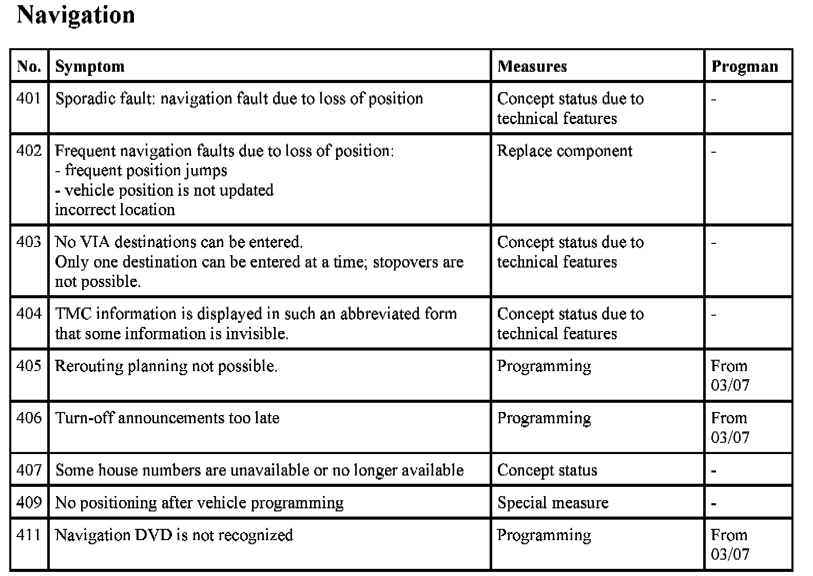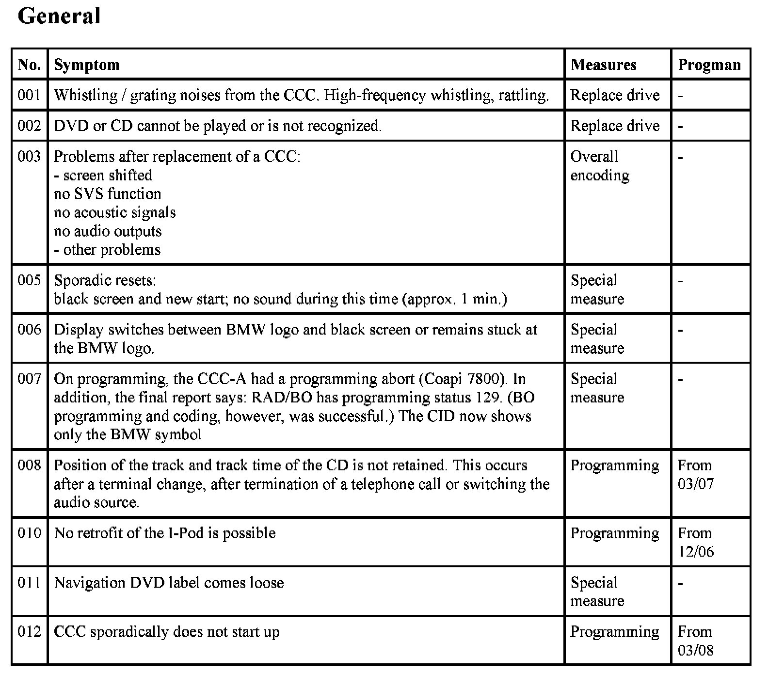 The navigation system Professional (CCC) is a complex control module with a large number of possible fault profiles. The following list shows known symptoms in the functional area CCC audio and navigation. Fault profiles from the functional areas of telephone and Telematic services as well as integrated heating / air conditioner control are not covered in this test module.