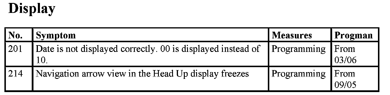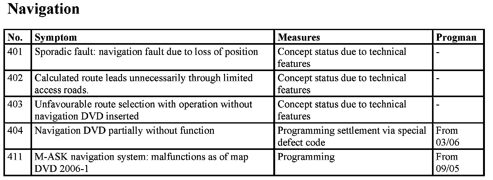 Fault Profiles, Malfunction In Navigation System Business 03/05