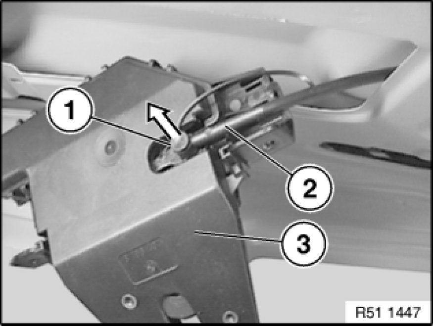 Lever out actuating rod (2) and remove upper section of rear lid lock (3).