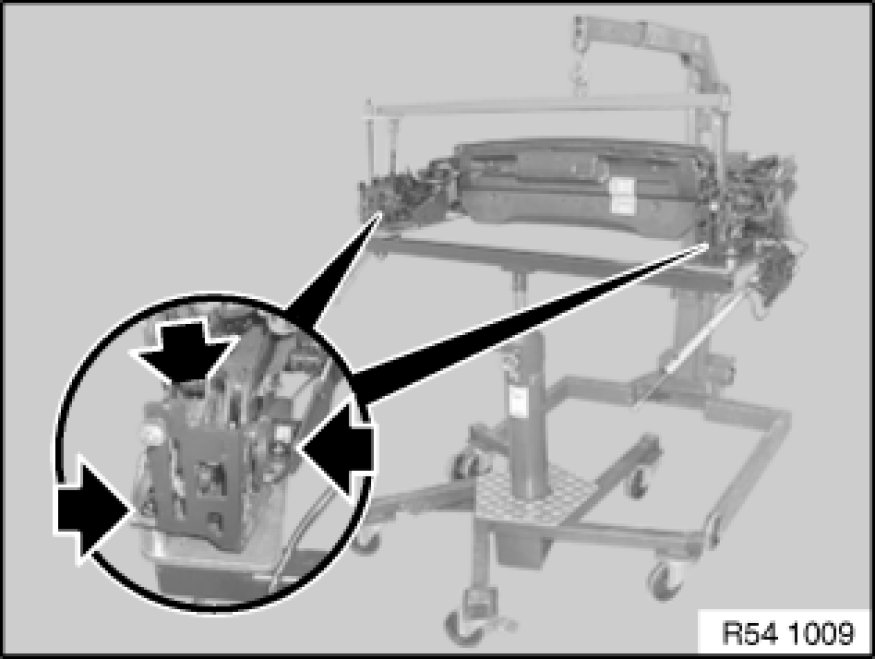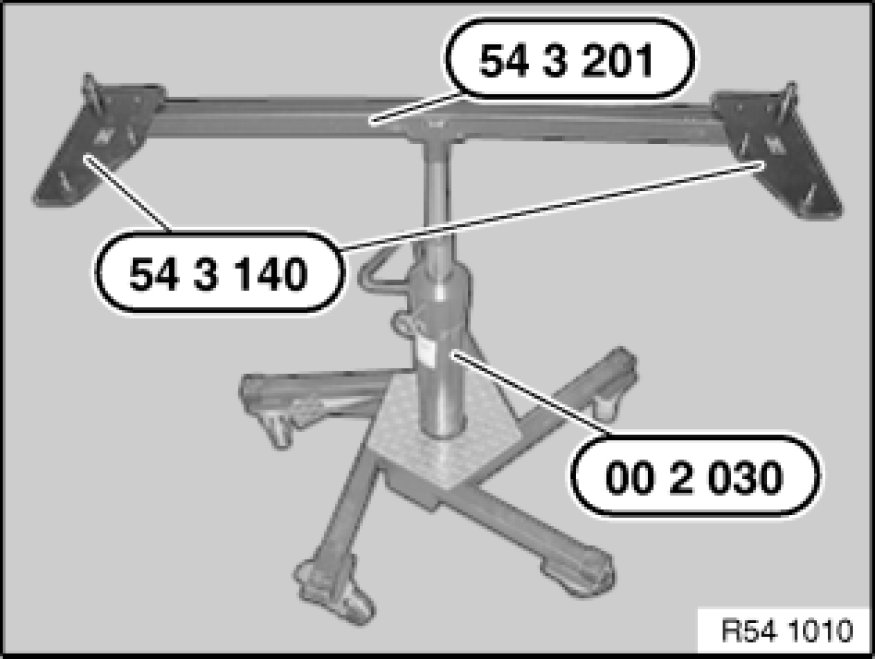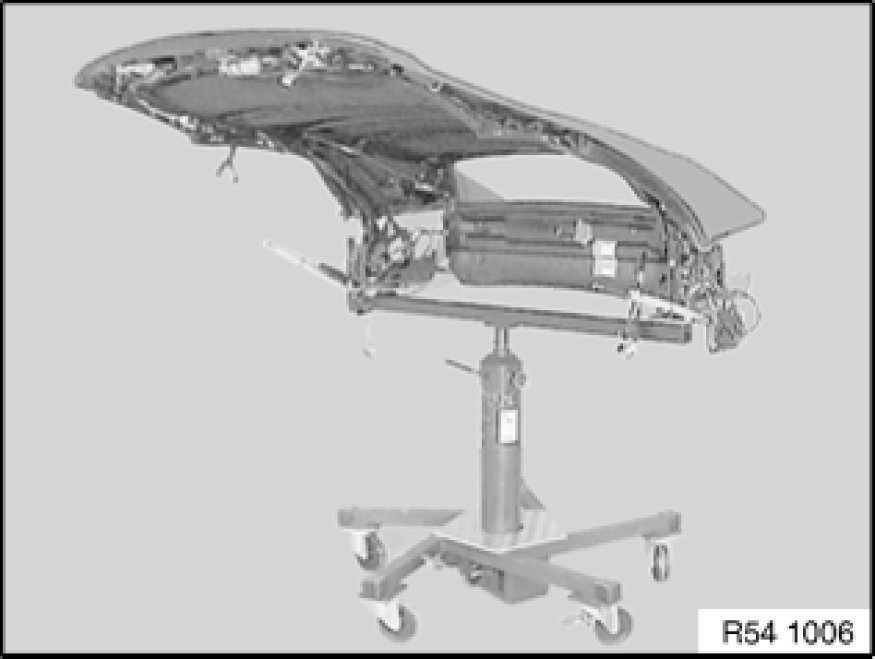 Suspend kinematics box at side from special tool 54 3 140 54 3 140 Convertible Top Support Rest (Set).