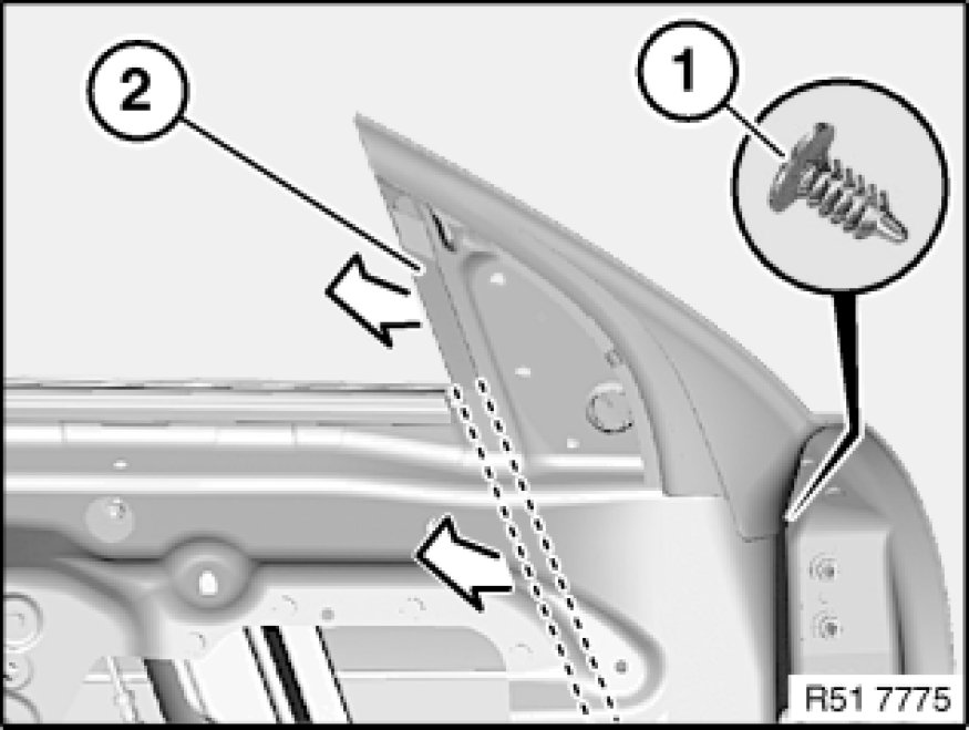 Remove rubber guide (1) in direction of arrow from front door.