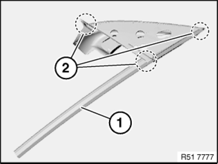 Rubber guide (1) must not be damaged in corners (2).