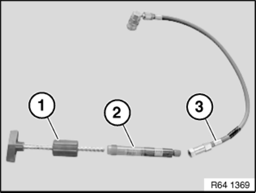 After filling, remove quick-connect coupling (1) and if necessary use the cleaning agent contained in the special tool case to clean up the UV additive.