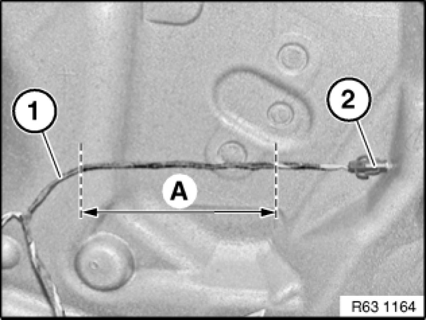 Cut through wiring harness (1) in area (A) and remove LED for door opener (2).