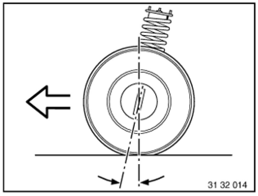 Is the inclination of the kingpin in the direction of travel viewed from the side. The line through the center point of the spring strut support bearing and the control arm ball joint corresponds to the "kingpin".