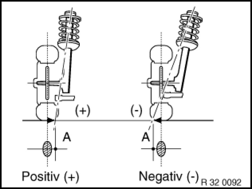 Is the distance from the center of the wheel contact face to the intersection point of the kingpin extension. The line through the center point of the spring strut support bearing and the control arm ball joint corresponds to the "kingpin".