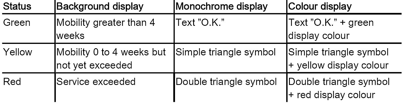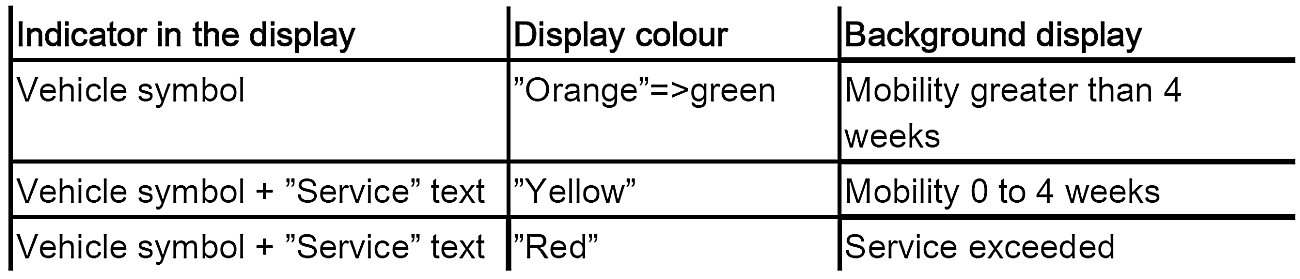 The remaining distance display gives the mobility in km or miles and is negative once a service has been exceeded.