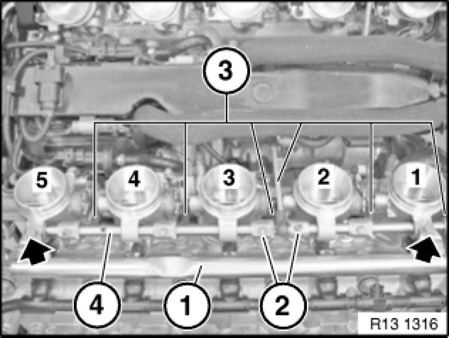 Carefully raise cable duct (4) slightly and remove throttle valve assembly (5).