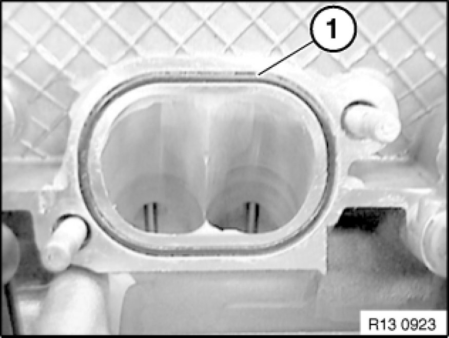 Clean sealing surface (1). Note correct position of adapter sleeves (2).