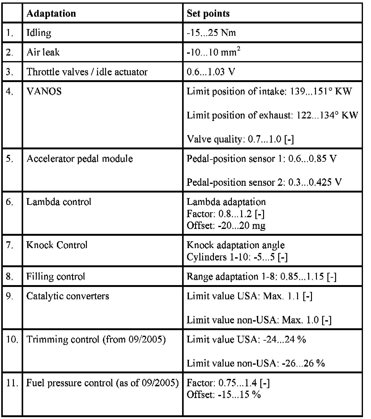 The trimming control checks the aging of the oxygen sensors and catalytic converters. The adaptation value is used to influence the oxygen-sensor control.