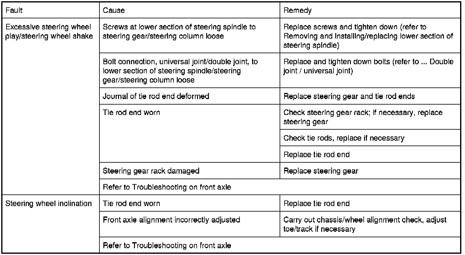 Observe troubleshooting on front axle and diagnosis help for