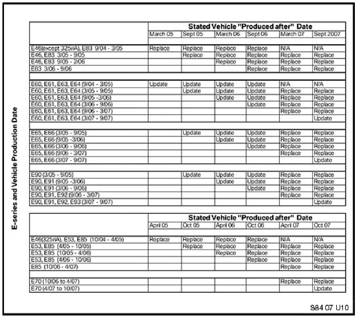 ^ If "N/A" is stated in the chart, it is not possible to update the vehicle to support the customer's handset. For example, the customer has an 11/04 E83 and would like to pair it to an iPhone. The iPhone is currently only compatible with 9/06 and new production vehicles.