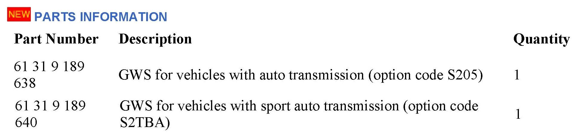 The GWS should be replaced when prompted by the DIS/GT1 test plans and after careful evaluation of the all GWS faults stored. After GWS replacement, the complete vehicle needs to be reprogrammed and recoded, using the current version of Progman/ISTA P.