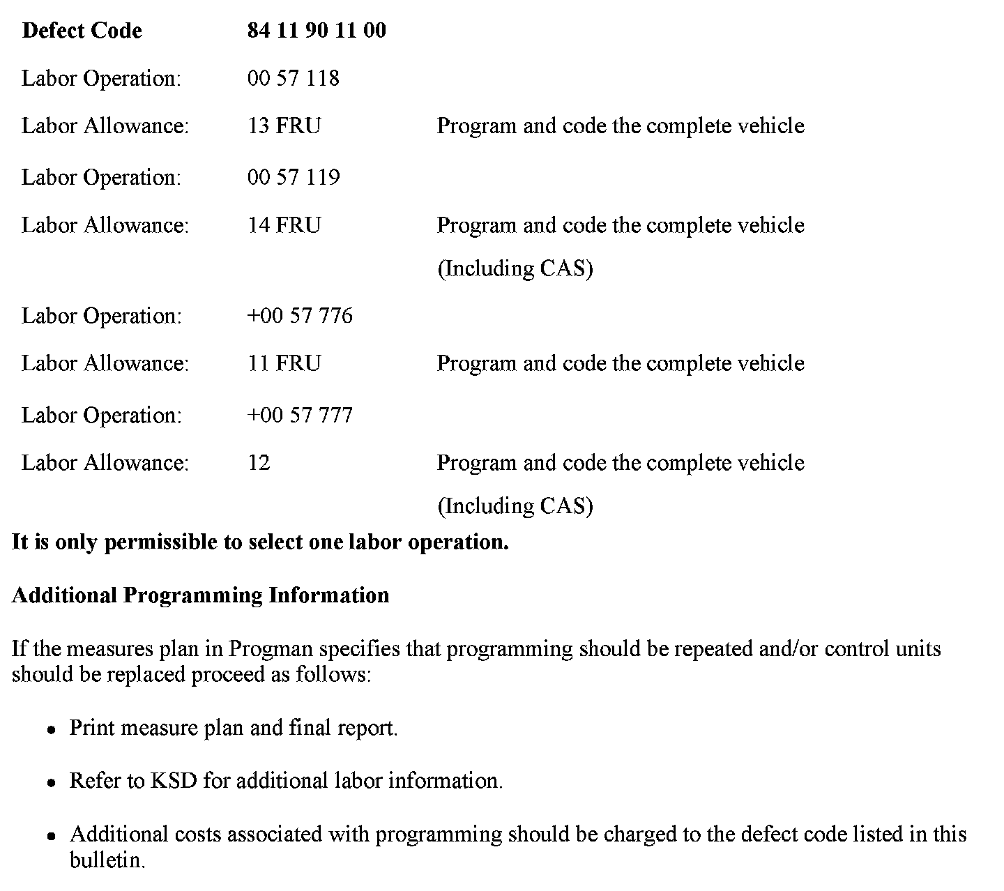 4. [NEW] If there are no TCU or MOST-bus communication faults, code the complete vehicle per SI B09 05 01 (Coding, Individualization, Programming), Procedure E, using Progman V27.01.00 or higher. Note: This will automatically update any control modules not at the latest software level.