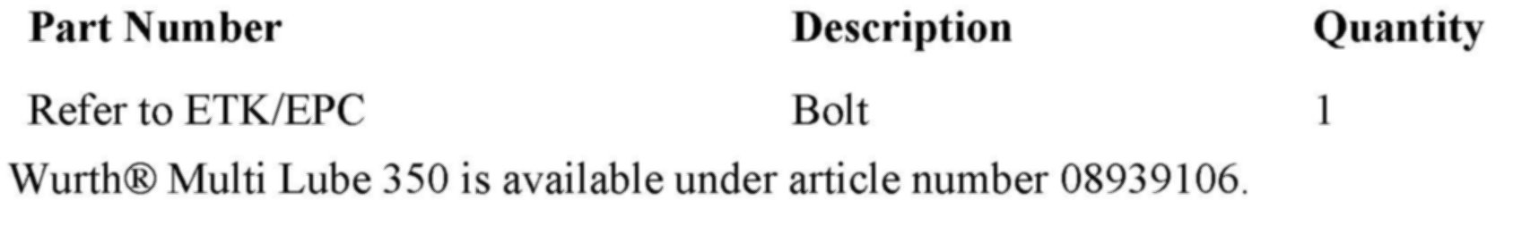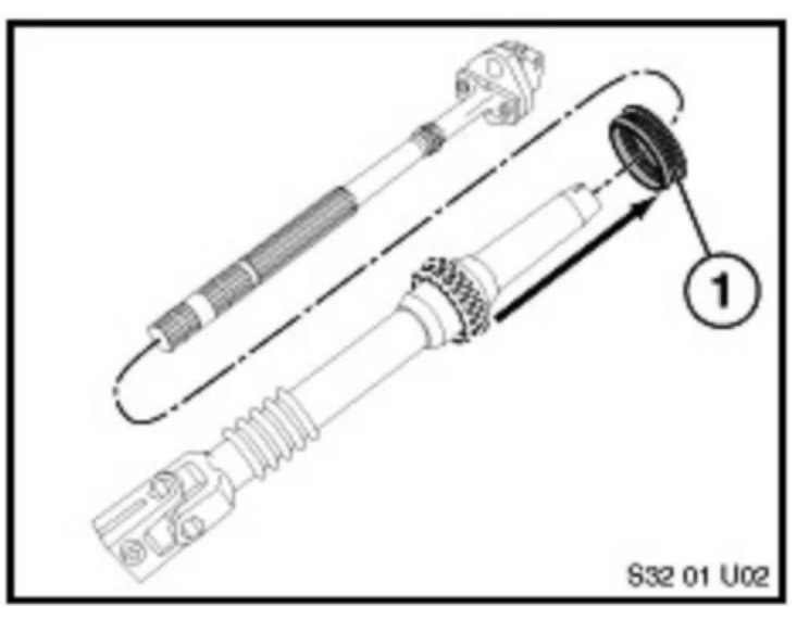 5. Lubricate the steering shaft slip ring (1) by spraying Wurthreg; Multi Lube 350 onto the steering shaft from the engine compartment side. Turn the steering wheel from left to right to distribute the lubricant. Please note that it is not necessary to remove the steering shaft.