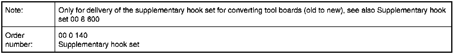 00 0 140 Supplementary hook set
