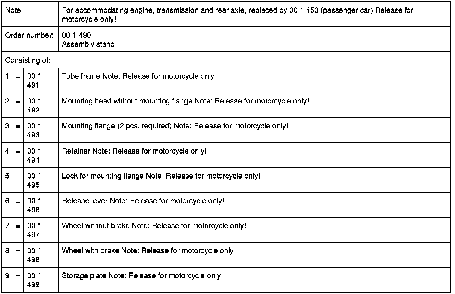 00 1 490 Assembly stand