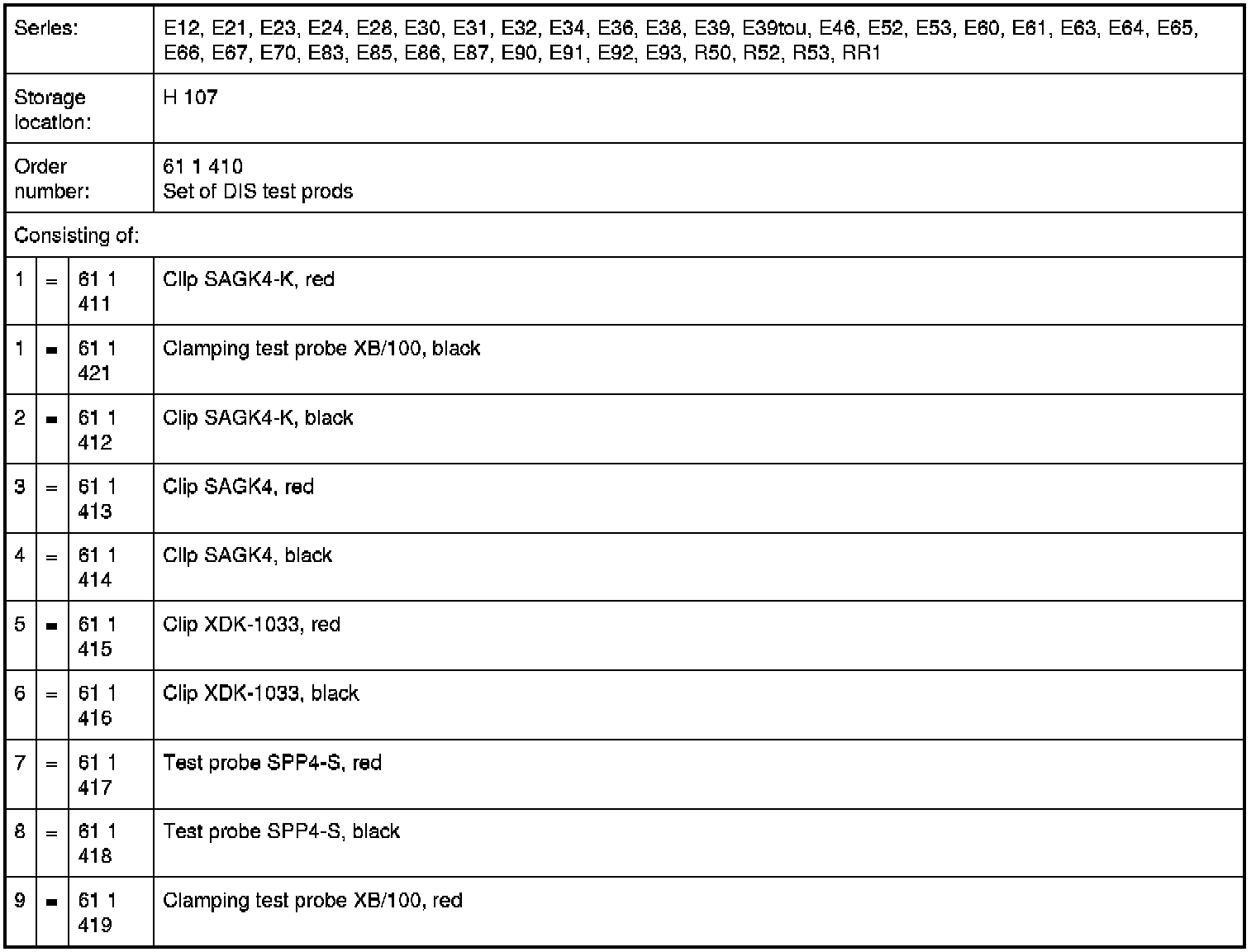 61 1 410 Set of DIS Test Prods