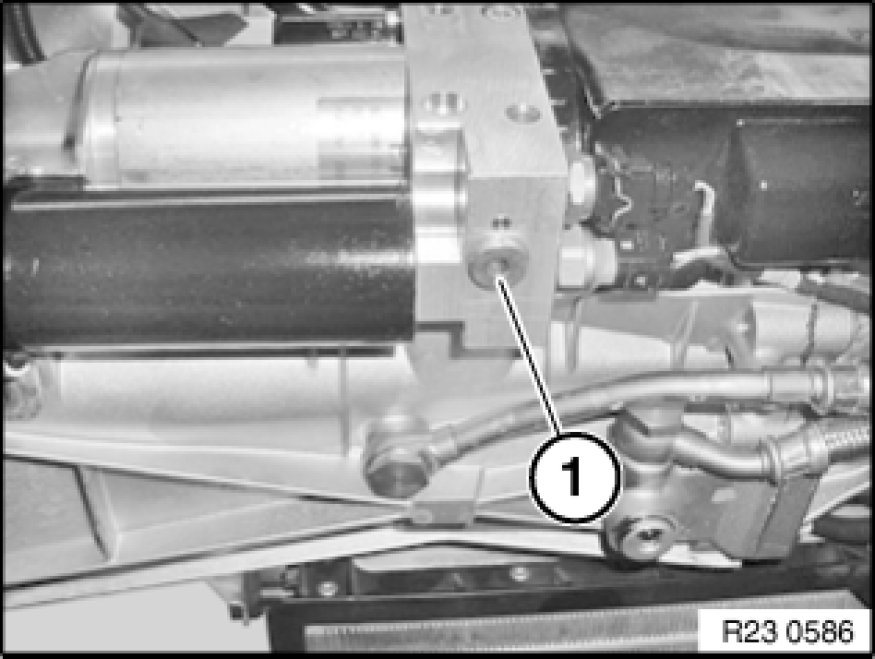 Undo screw plug (1) on underside of pump block a few thread turns. Do not release plug completely.