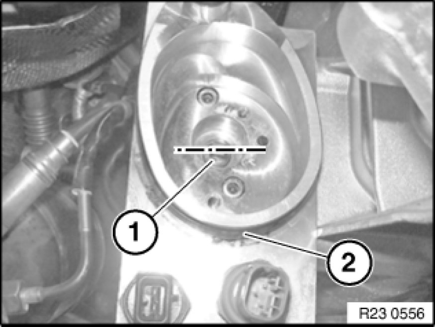 - Attach greased coupling element (1) from repair kit to oil pump (2) and align horizontally to electric motor drive shaft.
