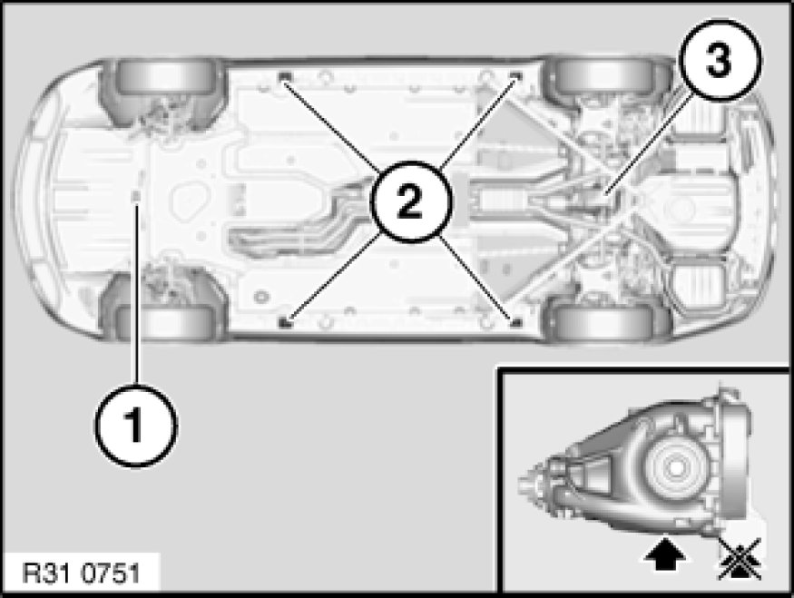 1. Use only BMW-distributed/approved trolley jacks which have rubber plate contact points.