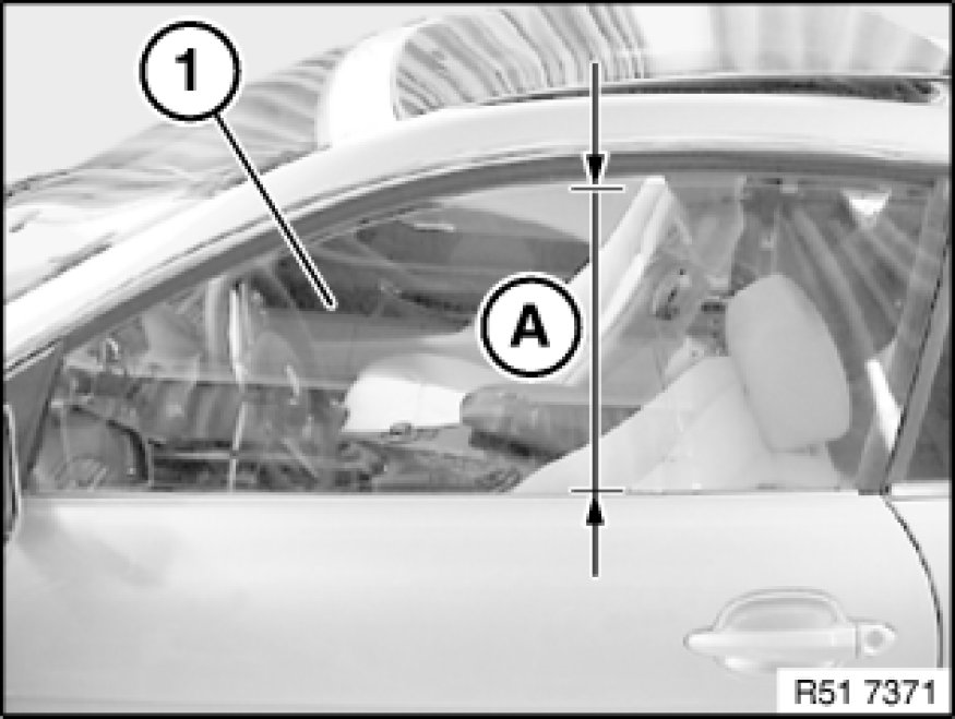 Door window glass (1) must be opened to dimension (A).