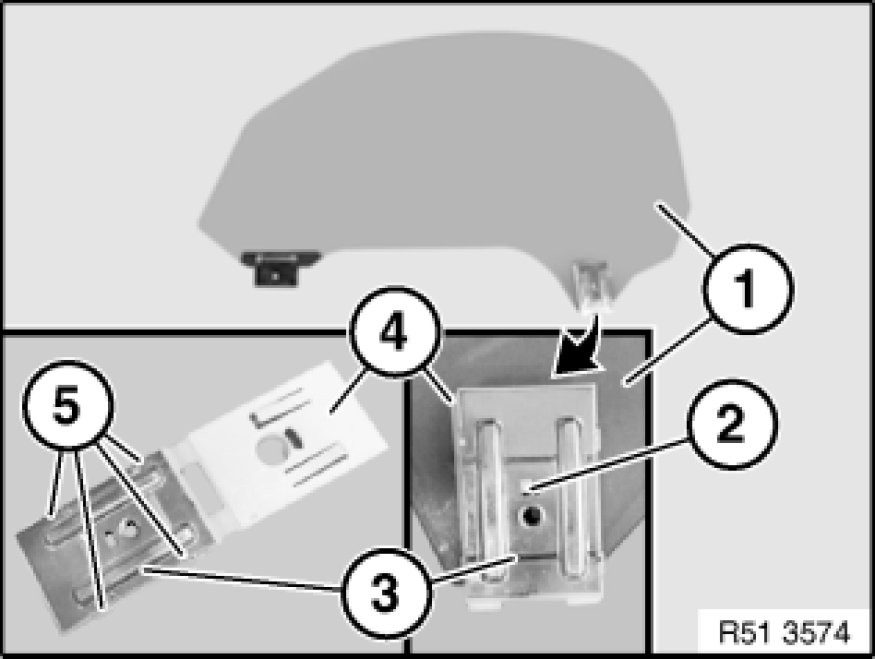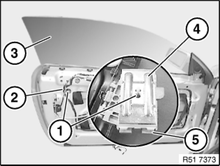 Lever out catch (2) from shim (4) and remove with clamping plate (3) from door window glass (1).