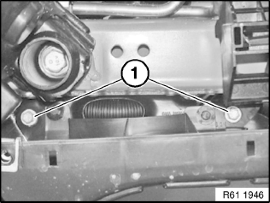 Release screws (1) on fluid reservoir for windscreen washer unit.