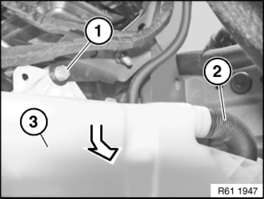 61 71 061 - Replacing (removing and installing) fluid reservoir for windscreen washer unit