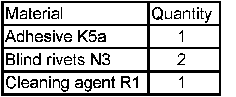 In area of adhesive surface (1), drill a 4.2 mm dia. bore hole (2) for blind rivet N3.