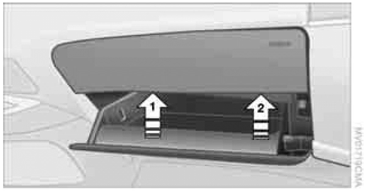 The fuse box is located inside the glove compartment, behind the access cover.