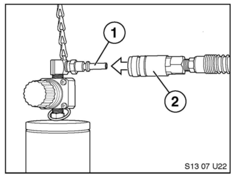 13. Connect the shop air supply (2) to the application cylinder (1).