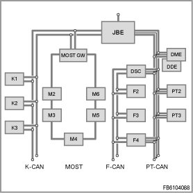 - control module with connection to K-CAN, PT-CAN and diagnosis lead