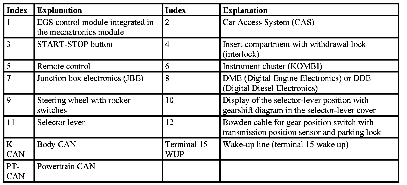 The CAS (Car Access System) evaluates the following signals from the EGS (Electronic Transmission Control) for the start: