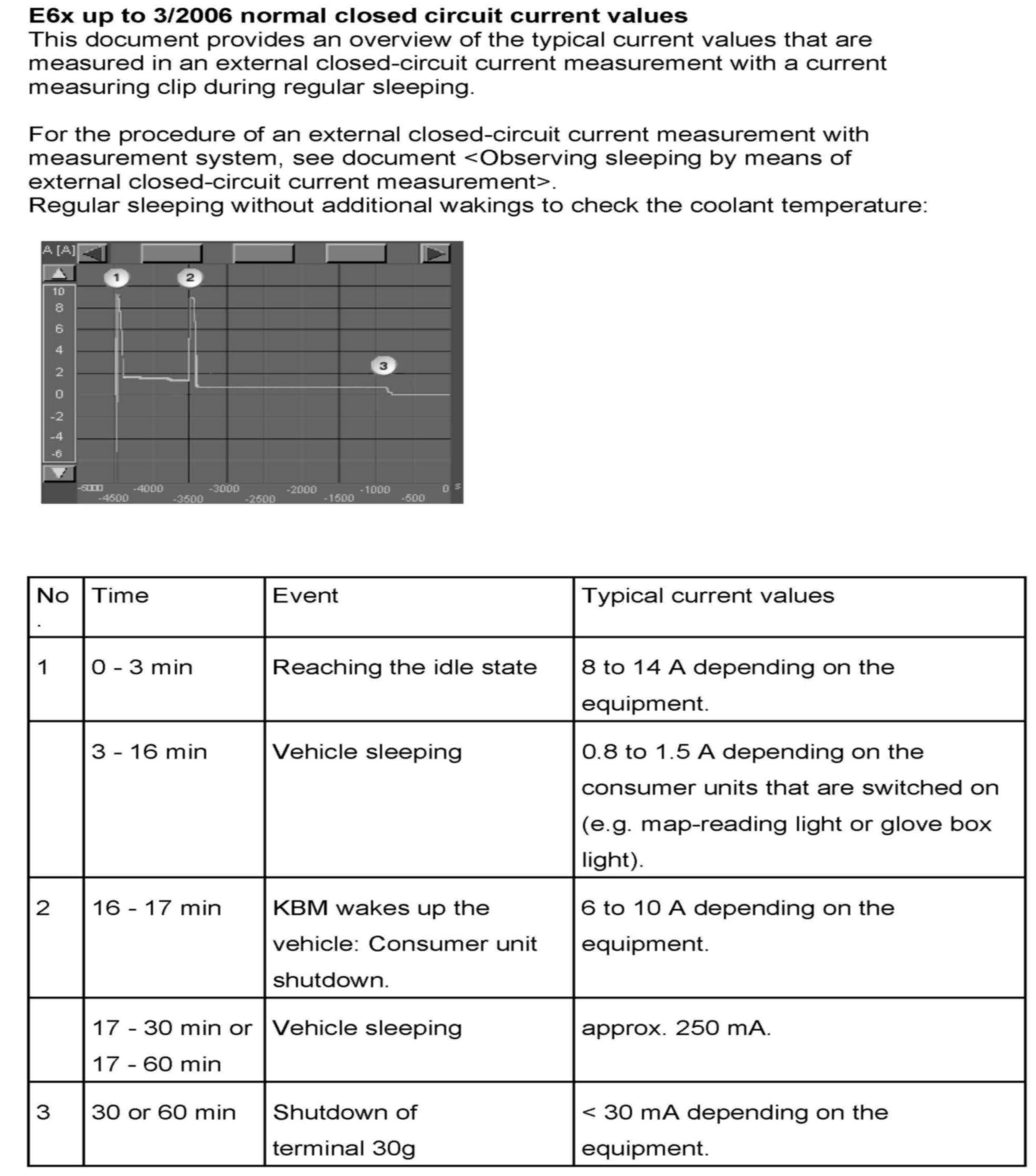 Normal Closed Circuit Current Values