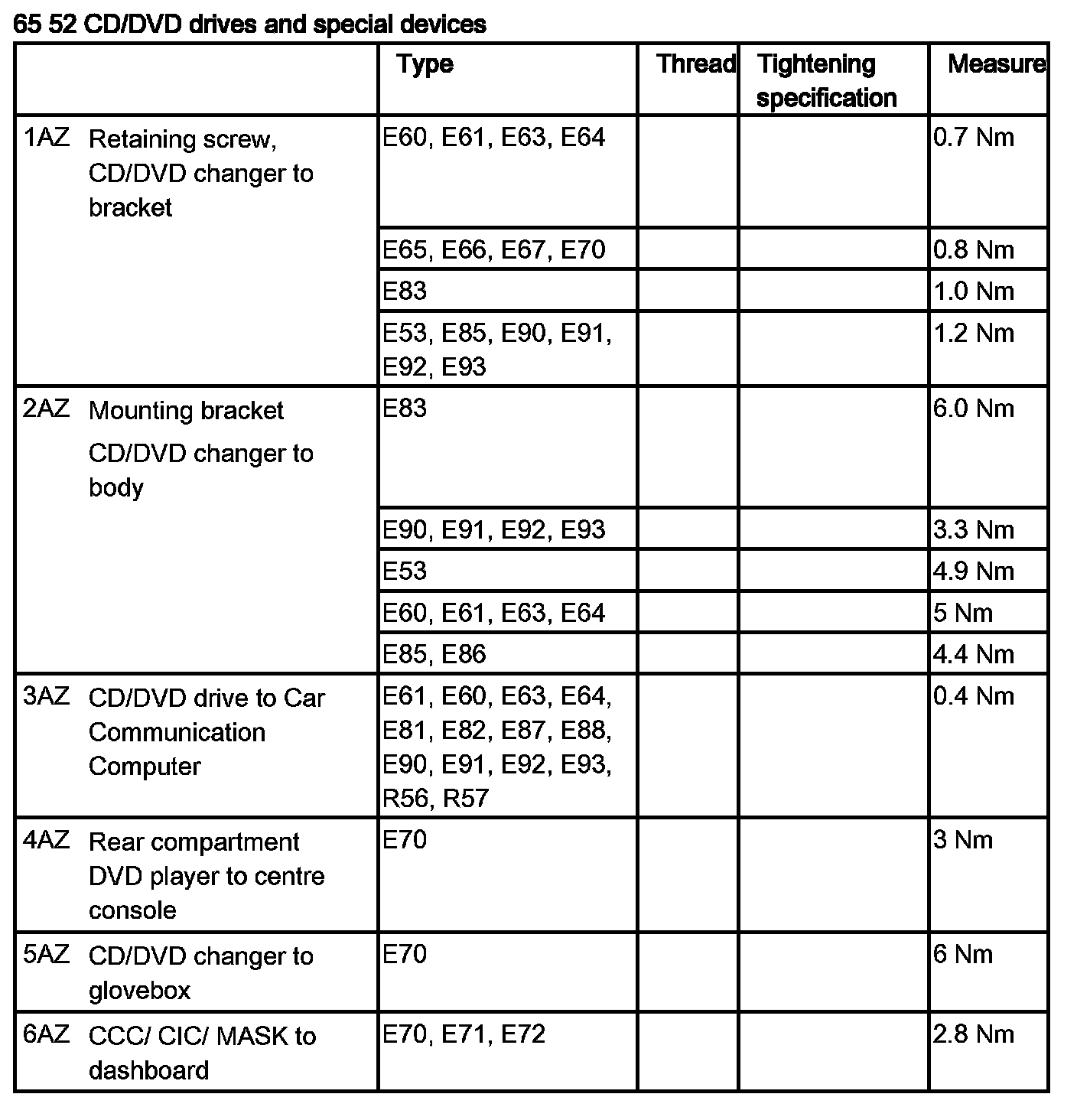Tightening torque 65 11 3AZ.