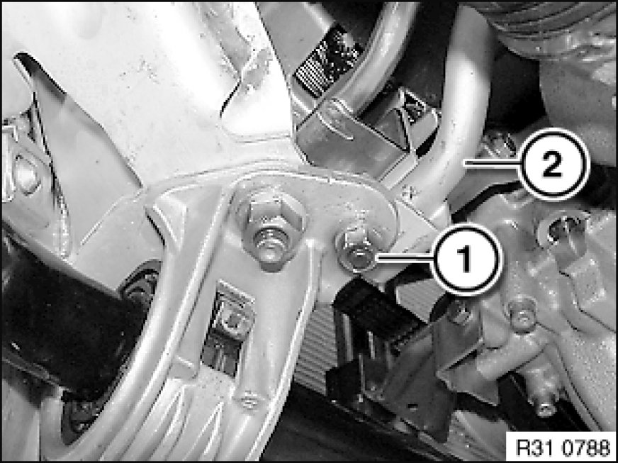 - Disconnect return line from power steering gear 32 13 060 Removing and Installing/Replacing Power Steering Gear
