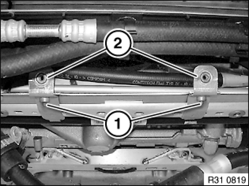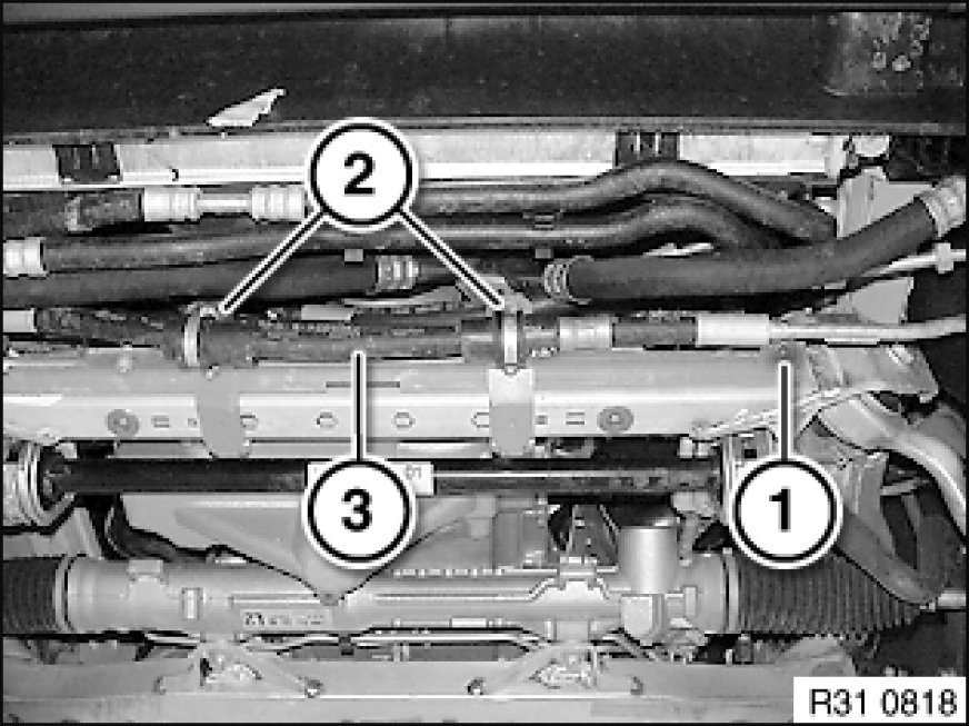 - Disconnect pressure line from power steering gear 32 13 060 Removing and Installing/Replacing Power Steering Gear