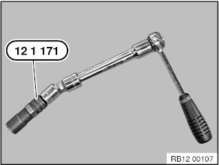 Then tighten the spark plugs using a torque wrench, special tool 12 1 171 and an extension with a joint.