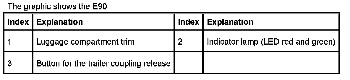 The electrical folding trailer coupling is a component of the optional extra 'trailer coupling with articulated ball head'. This optional extra has been offered for the E9x since 03/2007. The electrical folding trailer coupling is operated using a button in the luggage compartment.