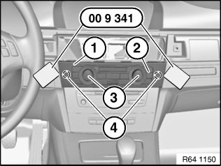 Unclip heater/air conditioner operator unit (2) complete with trim (1) at fastening points (4) and pull back.